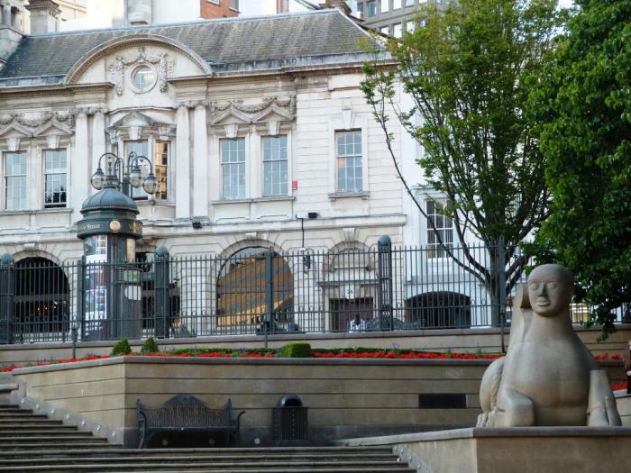 Впрочем, сохраняй не сохраняй, а современная культура бесцеремонно лезет во все щели, словно массовый турист, стремящийся обязательно запечатлеть себя на фоне старинных достопримечательностей. В начале 1990-х площадь Виктории решили основательно «освежить» и понаставили повсюду каких-то жутковатых модерновых сфинксов и прочую продукцию современных художников.
