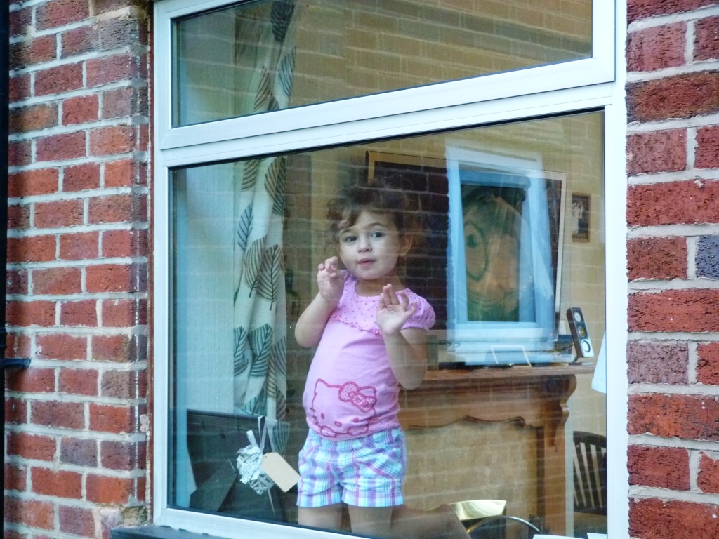 В 17:25 мы прибыли по адресу наших хозяев в Бирмингеме. Вон из окна уже симпатичный девчёныш выглядывает, хочет с гостями познакомиться.