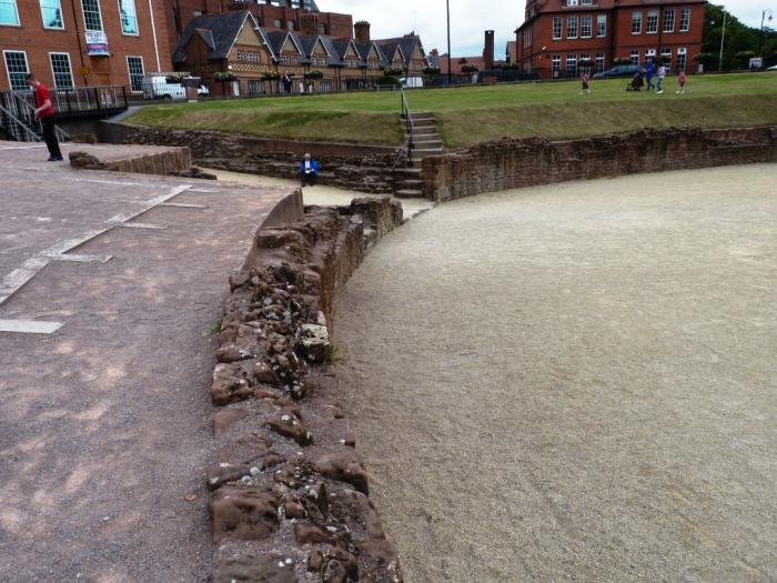 Как-то упустил я из виду при подготовке, что величественное древнее сооружение в Честере археологи обнаружили только в 1929 году! Помнил бы об этом — не ждал бы увидеть аналог Колизея или хотя бы израильской Кесарии. Радовался бы, что хоть что-то нашли. Кое-где тут даже старая каменная кладка проглядывает: