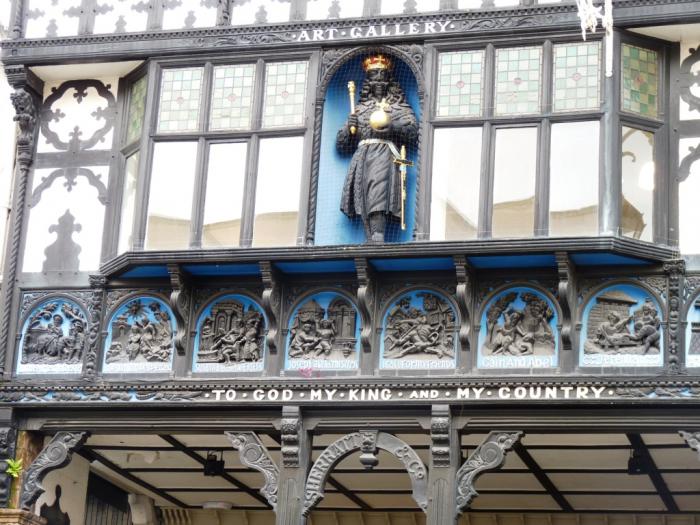 Надо отметить, что свое лицо у Честера, безусловно, есть. Ни на Йорк, ни на Эдинбург, ни на старые английские деревни, которые мы посетили в этом путешествии, он не похож. Относительно высокие дома, причудливые узоры фасадов — на ставший уже в чем-то привычным фахверк это «черно-белое возрождение» как-то мало похоже. А заметили, как некоторые дома клонятся друг к другу? Чем кривее, тем стариннее и ценнее — это я давно уже уяснил. :) Но мне куда интереснее разглядывать «лицо старого города», замечая все новые любопытные подробности.