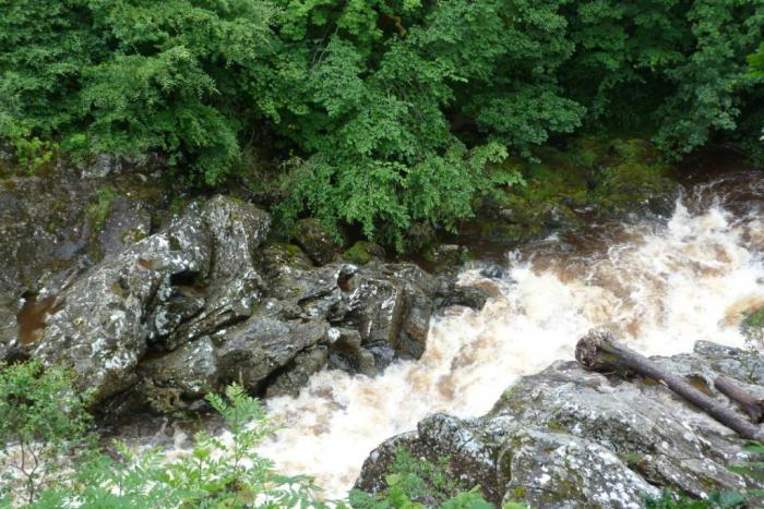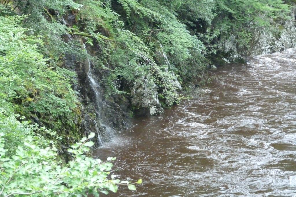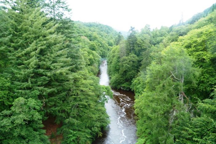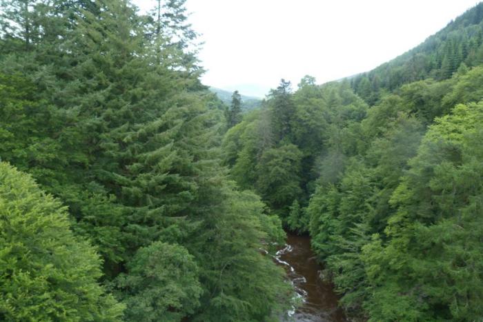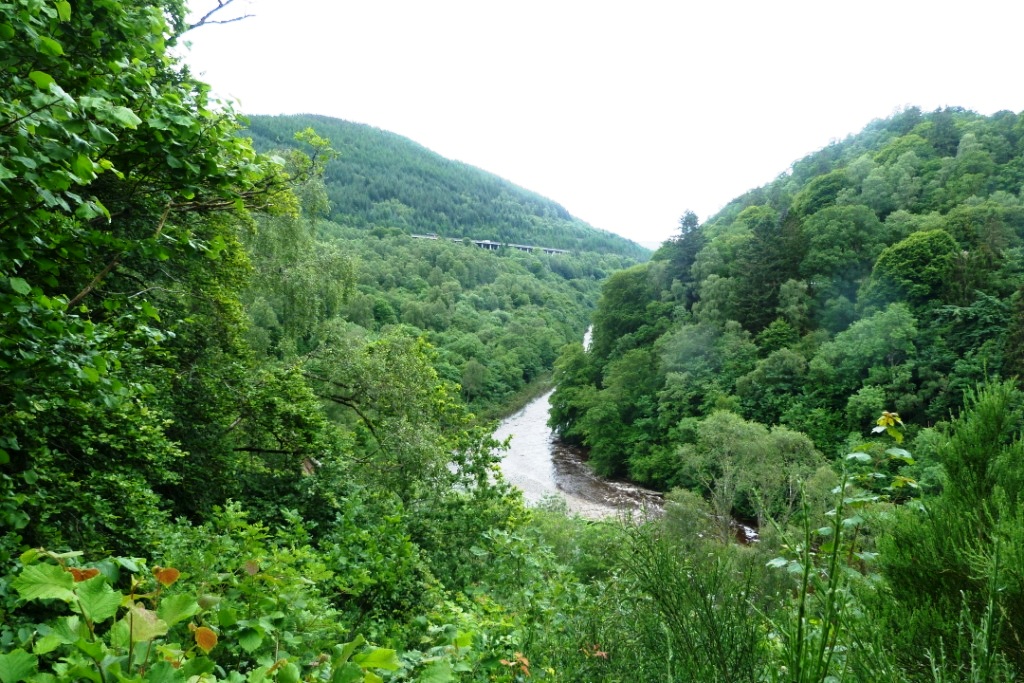 В 15:40 мы приехали на перевал Killiecrankie. На перевал это место не похоже, правильнее было бы назвать его ущельем, по которому протекает бурная горная река. Трасса А9 идет поверху, оттуда мало что можно увидеть. Мы скатились с нее по B8079, идущей вдоль реки к информационному центру.