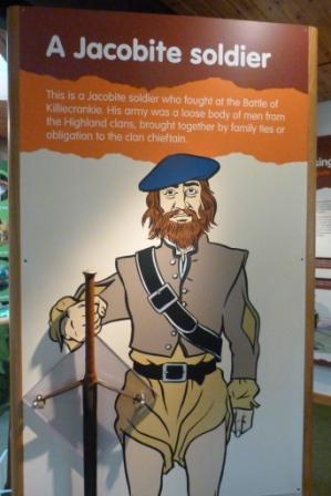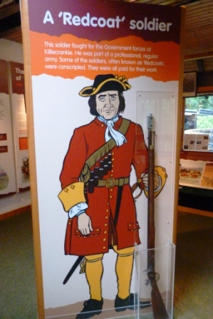 Когда горные кланы подняли мятеж против Вилгельма Оранского, на его подавление в горы бросили английские войска. Их целью был замок Блэр, куда мы вскоре приедем. Мятежники понимали, что замок им против артиллерии и кавалерии не удержать, и устроили засаду в ущелье Killiecrankie, всего в двух милях к югу от Blair Castle. Пушки «краснокафтанников» здесь оказались абсолютно неэффективны, чего нельзя было сказать о холодном оружии, которым горцы владели куда лучше. Прижав своих противников к реке Гарри, мятежники-якобиты наголову разбили их войско. Погибло 2000 солдат — около половины присланной армии нового короля, остальные спаслись бегством. Один из беглецов вошел в историю: видя, что горцы преследуют его по пятам, он умудрился одним прыжком перескочить через реку, а ущелье, по которому она здесь протекает, — 5.5 метра шириной. Теперь это место называют Soldier's Leap — «прыжок солдата».