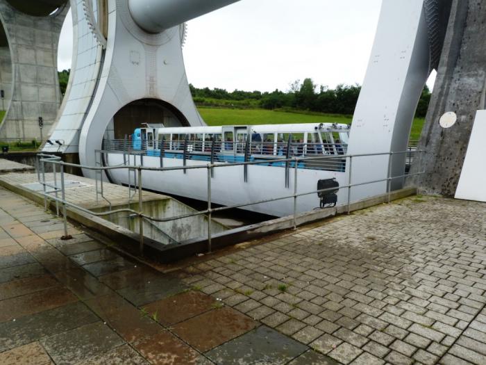 И, наконец, начинается главное действо, демонстрирующее инженерный гений создателей Falkirk Wheel. Корабли из верхней и нижней систем каналов меняются местами.