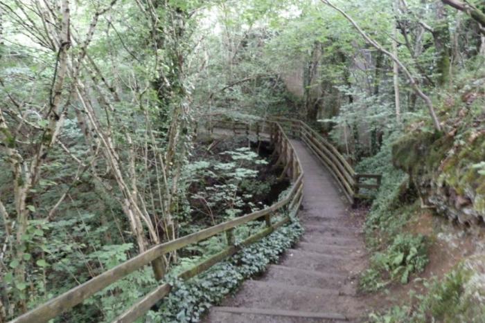 Вернулись на машине назад, по B8019 пересекли реку и сразу же припарковались на бесплатной парковке у моста. Вниз ведет тропа, позволяющая прогуляться вдоль ущелья, полюбоваться рекой с пешеходного моста.