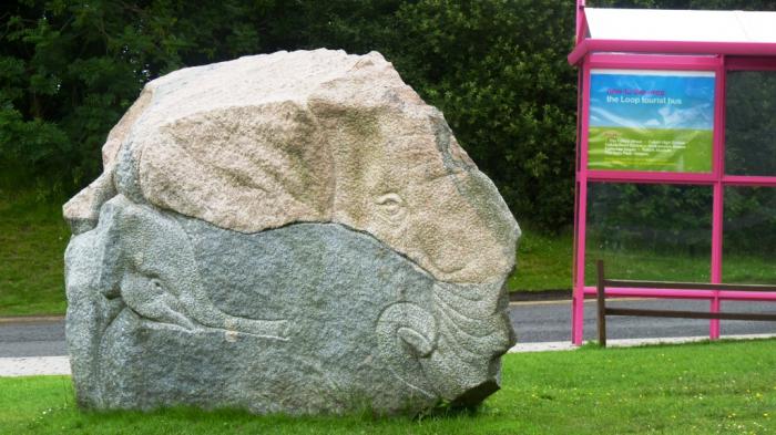 Впрочем, за «посмотреть» денег не берут, а мы сюда приехали именно для этого. Вокруг самого шлюза раскиданы детские площадки, объясняющие законы гидравлики, да образцы скульптурного творчества, вырезанные прямо из местных булыганов.