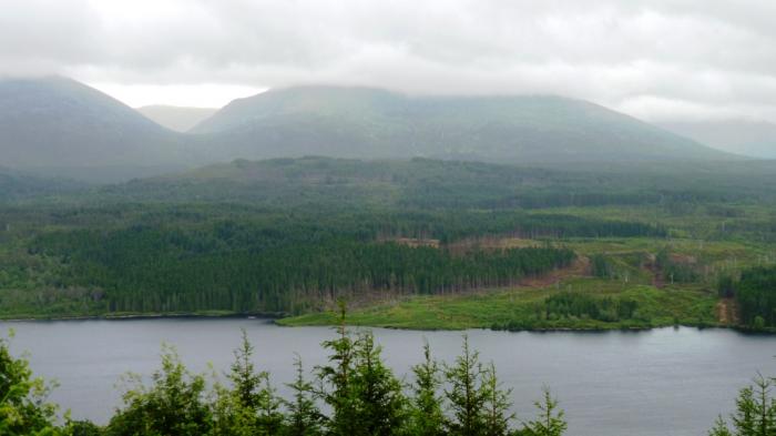 По гленам тянулись армии и строились крепости, по лохам шли флотилии и велась торговля… Неудивительно, что влюбленные в свою историю потомки горцев отправляются теперь в пешеходные маршруты, чтобы полюбоваться природными красотами, вспоминая при этом страницы учебников. Путь, которым мы ехали на запад, во многом совпадал с самым известным из здешних пешеходных маршрутов — Great Glen Way. Поэтому дорога, ведущая нас между лохами и гленами, была хорошо размечена и оборудована немалым количеством смотровых площадок. Не то чтобы это сильно помогает в такую погоду, но все же мы регулярно останавливаемся, чтобы поразглядывать окрестности.