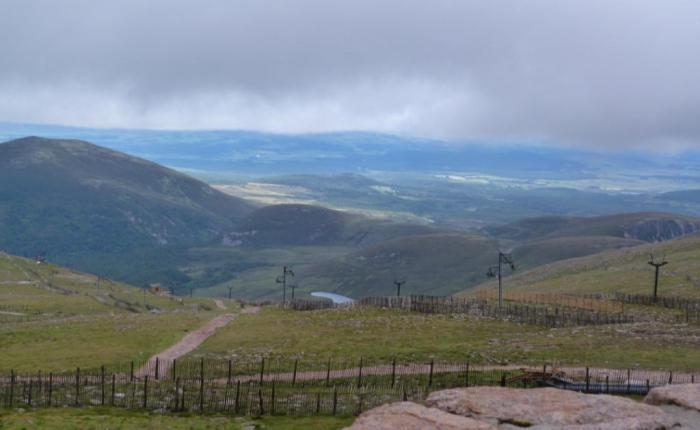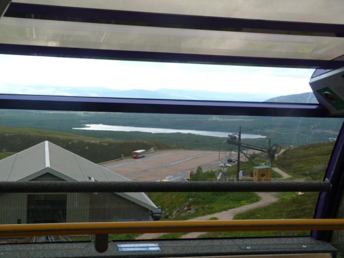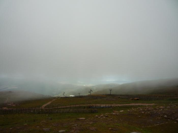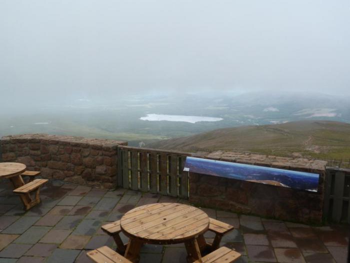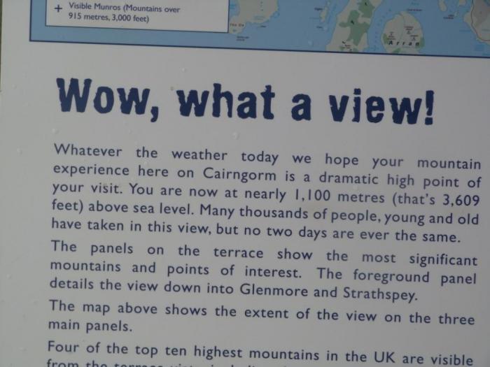 Информационный щит заботливо сообщает нам, что мы забрались на высоту в 1100 метров, откуда должны быть видны 4 из 10 самых высоких вершин Британии. Независимо от погоды, обещают нам, мы никогда не забудем посещение Cairngorm.