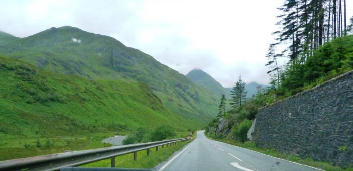 Периодически дорога прорезает горы насквозь или послушно стелется по очередному глену.