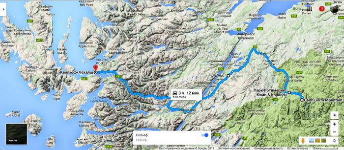 Пробег до острова Скай 118 миль/ 190 км, от выезда до финиша 3.5 часа, средняя скорость движения 50 км/ч