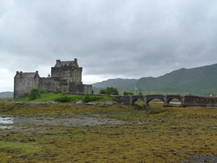 очень популярен среди туристов, особенно, благодаря тому, что стоит на островке и соединен с сушей лишь изящным арочным мостом. Мы, правда, попали сюда во время отлива, и до замка можно было дойти по обнажившемуся илистому дну. На самом деле, зрелище все равно было очень привлекательное, но на фотографиях выглядит хуже, чем могло бы.