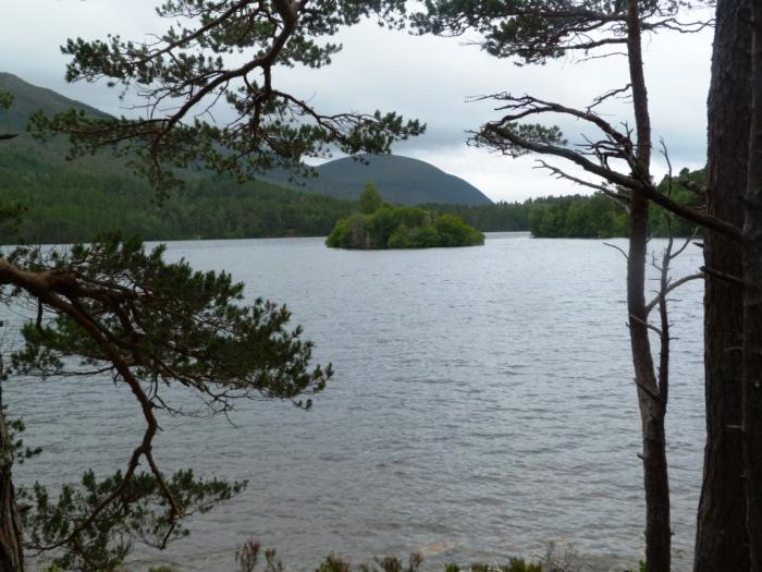 У нас в этих краях основной целью на сегодня был подъем на вершину Cairngorm на фуникулере. Но до отхода первого утреннего поезда наверх оставалось еще уйма времени, так что мы отъехали на пару километров от лагеря и отправились на прогулку вокруг озера Loch an Eilein. Выскочивший невесть откуда на велосипеде страж местной парковки сразу же нацелился взять с нас традиционные два фунта, но мы гордо вручили ему купон из кемпинга и отправились гулять совершенно бесплатно.