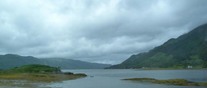 Очередной крутой вираж дороги и перед нами оз. Даич. Это на русскоязычной карте Гугла так написано. А на самом деле, Loch Duich плавно переходит в Loch Alsh, из которого, пробравшись сквозь несколько архипелагов, наши утлые челны выплыли бы в северную часть Атлантического океана или, при желании, в Норвежское море. Так что это уже самый настоящий местный аналог фьорда. И как хотите, но даже не пробуя воду на вкус, чувствуется в этой водной глади что-то необузданное, морское. Да и гладь тут весьма относительная…