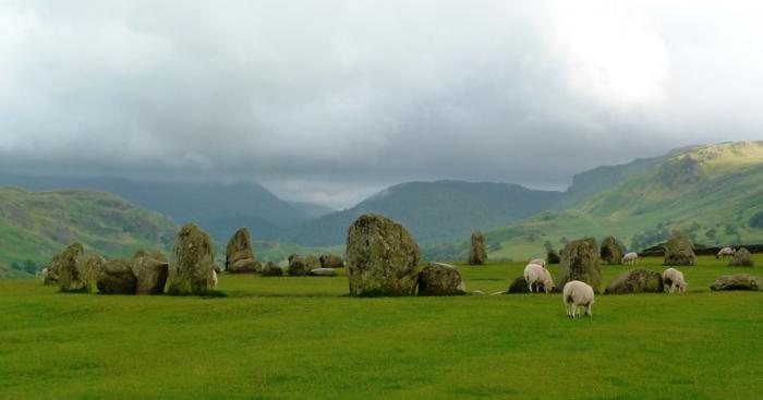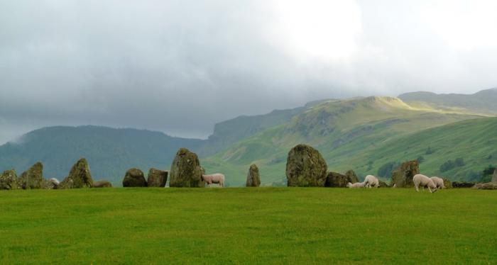Тем не менее, древние мегалитические сооружения продолжают привлекать и завораживать путешественников. Местную версию Стоунхенджа мы, в конце концов, нашли. Надо было через овечью изгородь от дороги пройти! Камни в Castlerigg Stone Circle куда мельче, чем в раскрученном монументе, но такие же загадочные и древние. А еще посещение этого мегалита не стоит 15£ с человека, их можно потрогать (в отличие от тщательно охраняемых булыжников на юге страны), они окружены живописными горами, а между древними памятниками мирно пасутся овцы, тоже очень украшая пейзаж.