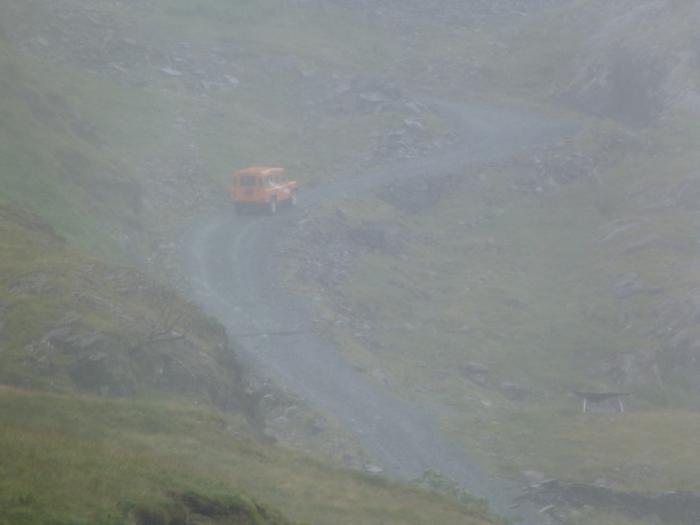 Пока мы пережидали дождь, чтобы начать скатываться с перевала вниз, я заметил ярко-окрашенную машину, которая явно решила продемонстрировать чудеса авто-альпинизма. Увидев мои загоревшиеся глаза, мама стала красноречиво расписывать все преимущества долгой жизни и объяснять, что она тоже в своем юном возрасте не спешит рисковать собой. :) Уговорила. А я уж хотел посоревноваться…
