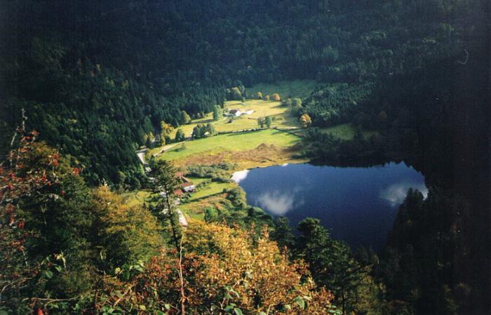 Горы Арденны. Вид со смотровой площадки на озеро и домик