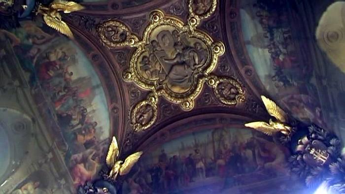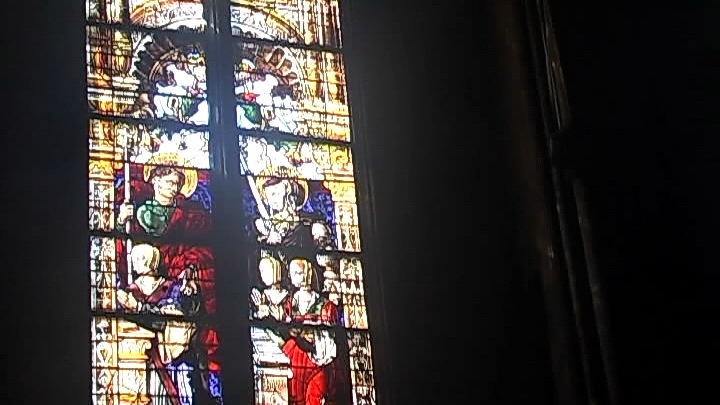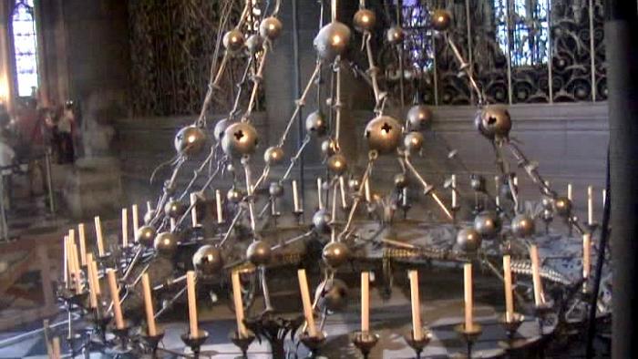 Причем некоторые восстанавливал Марк Шагал. Говорят однажды два недоумка решили забраться в собор ночью, чтобы совершить кражу, как им казалось ценного экспоната. Разбили один из бесценных витражей Шагала, проникли и похитили корону оказавшуюся муляжом.