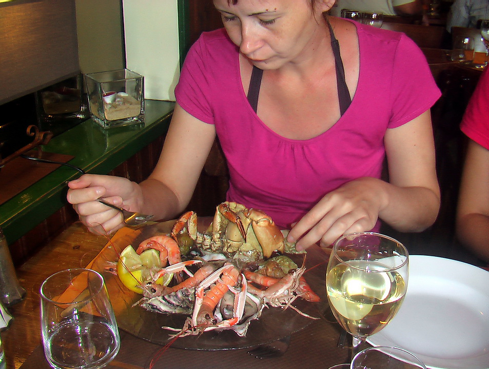 Надо было видеть сколько принесли приспособлений для этого заказа — всякие крючочки, ложечки и даже клещи-пассатижи для разламывания краба.