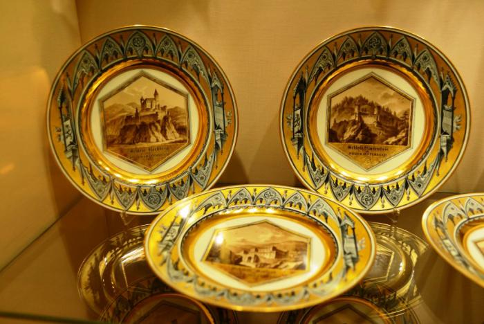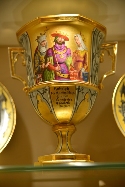 Все знают о советском «агитационном фарфоре», но эта идея, оказывается, уже «обкатывалась» на фарфоровых сервизах Габсбургов: среди сюжетов росписи – великие предки, замки Австрийской империи, сюжеты на историческую тематику.