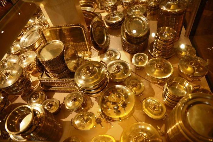 Если на кухне господствовала медь, то на столе императорской фамилии вплоть до начала XIX века не было места ничему, кроме золота и серебра.