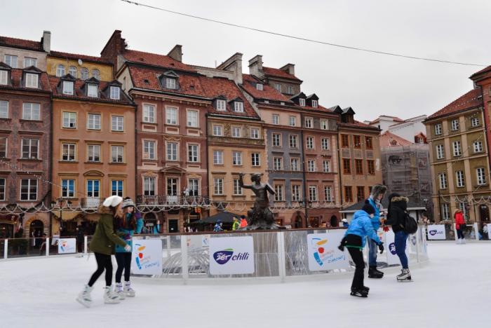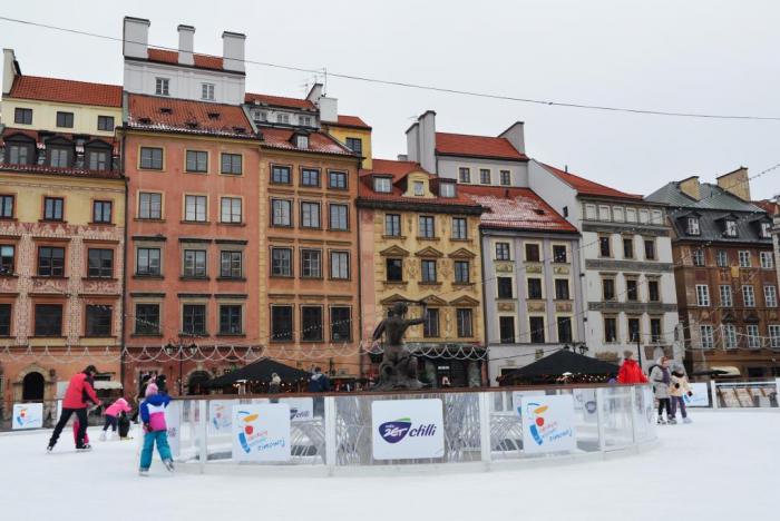 Рыночная площадь – сердце любого европейского города, и Варшава – не исключение. Вот только жаль, что насладиться видом городского символа – Русалки – у нас не получилось: Старый рынок превратился в каток.