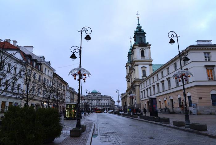Вечерняя прогулка по самой элегантной улице Варшавы – Краковское предместье – порадовала яркой иллюминацией.
