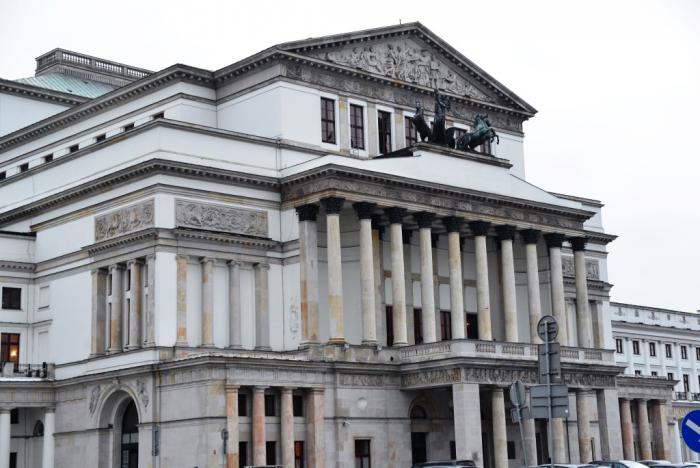 Среди великолепных варшавских зданий и сооружений выделяется помпезное здание Большого театра: безумное нагромождение колонн, кубических форм, портиков. «Я надену все лучшее сразу».