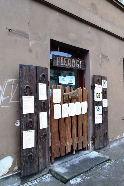 Польский колорит – в вывесках, таких, например, как эта, призывающая попробовать знаменитые польские вареники «пероги»: