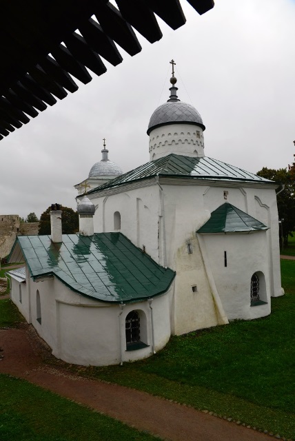 С утра рванули на знакомство с псковской архитектурой. Больше всего на псковские церкви похожи новгородские: такие же приземистые, с толстыми каменными стенами, белоснежные, с вынесенной звонницей.