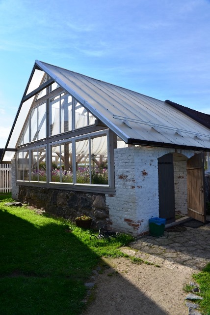 Летняя столовая, заставленная белой деревянной мебелью и закиданная множеством симпатичных безделушек, переносит куда-то на юг Франции — или в Бельгию.