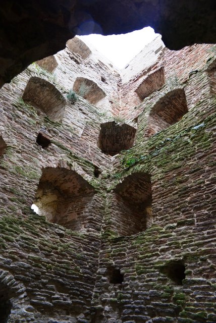 Мы успели зайти внутрь за какие-то смешные деньги и хоть чуть-чуть передохнуть от дождя на одной из крепостных стен. Жаль, но крытый навес скоро закончился, так что пришлось фотографировать по – увы! – хорошо откатанной технологии «вдвоем под одним зонтом»: