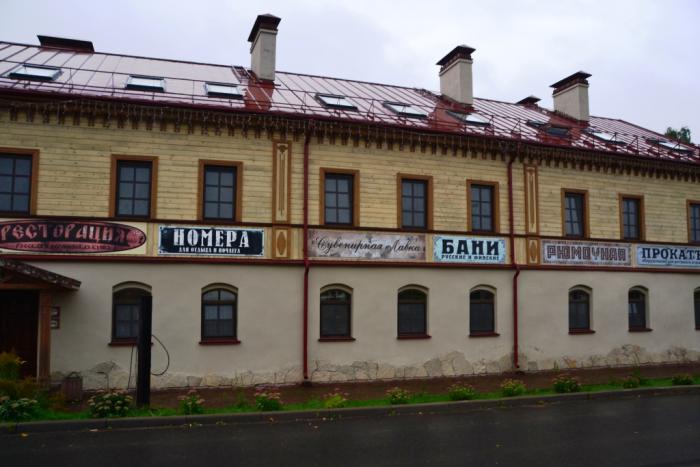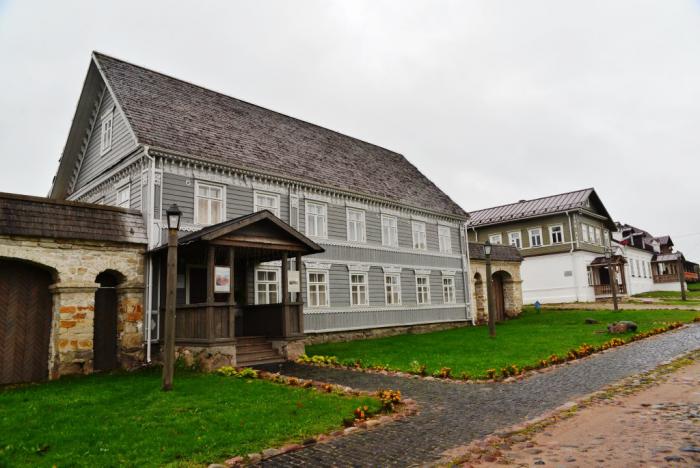 На главной улице Изборска нельзя не удивиться нескольким сохранившимся купеческим домам конца XIX века. В них сейчас находятся разного рода присутственные места.