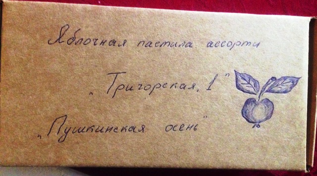 Внутри картонной коробки, надписанной авторучкой, находилось восемь маленьких рулетиков (1000 рублей). Часть из них была с жареной гречкой: по уверению хозяйки, это традиционный рецепт, при следовании которому крупа похрупывает, как жареные орешки. Поначалу вызвавшая сомнение, при более детальном исследовании сделанная вручную домашняя пастила оказалась неимоверно вкусной: пластичные рулетики – это просто бомба кисло-сладкого яблочного вкуса!