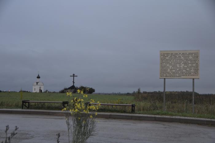 По дороге в Печоры, не выходя из машины, удивились Священному холму: как следовало из пояснительной табличке, здесь была собрана земля с мест воинской славы России, «где сражались, побеждали, мучились от ран и побеждали наши воины», а в основание холма положено Евангелие.