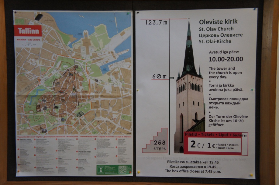 После сытного завтрака в гостинице, в 9 часов утра в информационном туристическом центре купили два билета Tallinn Card на 1 сутки (). По этому билету можно совершить одну автобусную экскурсию по городу, по выбору на красном, желтом или зеленом автобусе (у них немного отличаются маршруты). Причем на любой остановке этого автобуса можно выйти, самостоятельно что-то осмотреть и продолжить экскурсию на следующем автобусе. Этот билет позволяет в течение суток ездить на любом городском транспорте без ограничения количества поездок, посещать бесплатно или со скидкой музеи, получать скидки в некоторых кафе, ресторанах и магазинах.