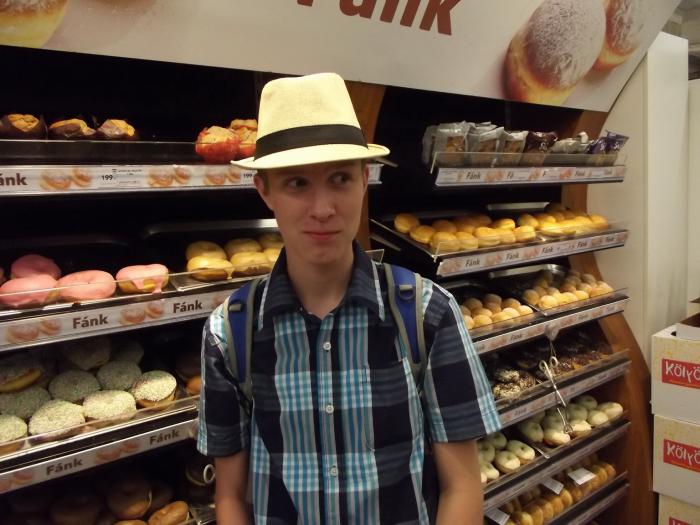 Вернувшись с прогулки по городу, выйдя на конечной станции синей ветки, отправились по магазинам большого торгового комплекса прикупить себе что-нибудь, потратить оставшиеся форинты, супруга по своим магазинам, ну а мы с сыном пошли в Tesco, договорились встретиться через час. Тут с нами произошел курьезный случай: подошли к супермаркету и не могли найти шкафчиков, чтобы оставить свои пакеты, они были не пустые, а с подарками, товар мог быть аналогичным (паприка, вино, сувениры). Шкафчики отсутствовали в принципе. У служащего на входе стоял шкаф с отсеками, где были различные сумки, исходя из этого я подумал, что возможно здесь оставляют свои сумки и берут бирку какую-нибудь. Я обратился к работнику и попытался сдать ему свою сумку, что не получалось, я давал ему пакет, он толкал его мне назад, оба мы говорили и не понимали друг друга, я пытался связать отдельные слова по английски, объясняя, что у меня наверняка есть аналогичный товар и мне надо сдать сумку, он что-то отвечал на своем языке, толкая пакет мне назад. Закончилось тем, что устав от непонимания, я достал из пакета паприку и показал, что там, показывая рукой, такое тоже есть, тогда взаимопонимание постепенно пришло, он взял наш пакет и на все находящиеся там вещи откуда-то достал и наклеил маленькие желтые стикеры и мы двинулись со своим пакетом в торговый зал. Там взяли пластмассовую тележку на колесиках.