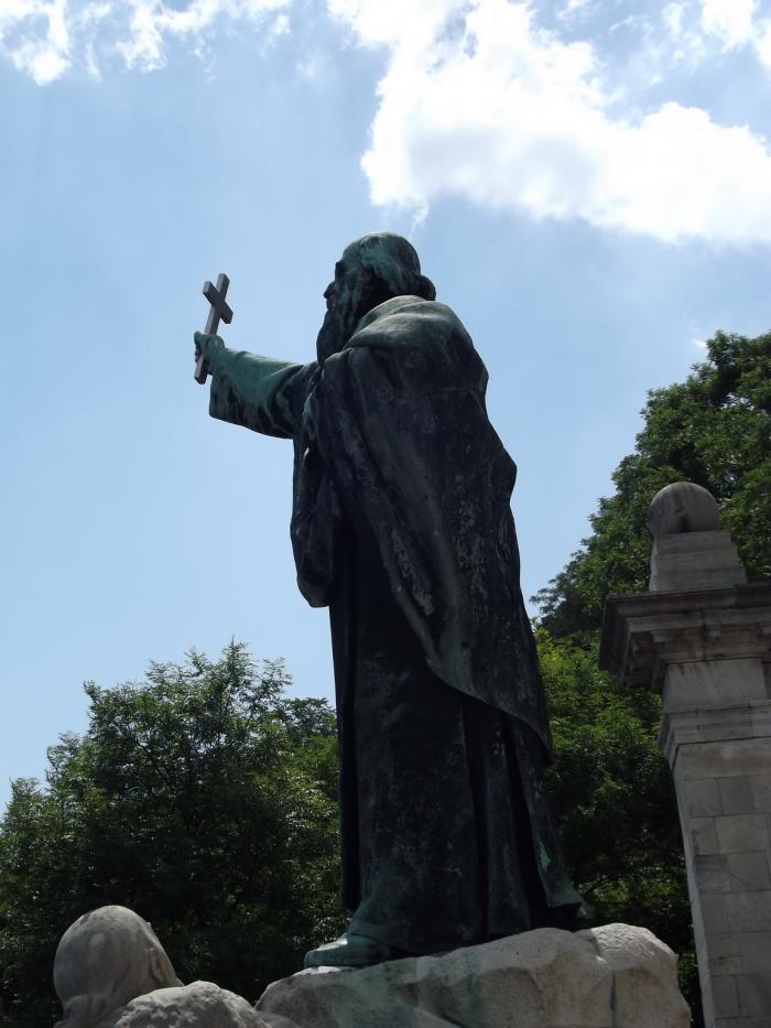 Далее через парк с горы и потом опять в гору, на Рыбацкий бастион. Путь довольно неблизкий, особенно тяжело было подниматься в гору к бастиону с обратной стороны, т.к. дорога чрезвычайно растянута зигзагами, по короткому пути не пройти, стоит железная сетка с табличками вход запрещен. На нижней площадке правда был платный лифт, но чего-то мы решили идти пешком, еще не зная что это будет трудно. В одном месте все-таки удалось срезать путь, несколько нахально, просто подошел к калитке и открыл щеколду, пройдя напрямую, срезав путь на пару сотен метров. Сдается мне, они специально закрывают эти проходы напрямую, чтобы снимать деньги за лифт. Описывать рыбацкий бастион нет смысла, красив сам и красивый вид сверху на Дунай, народу много. Фотографий в интернете довольно много. Кафе там довольно дорогие, но мы всегда берем с собой воду и какую-либо выпечку, так что воспользовались только услугами сувенирных лавок, в них цены оказались довольно умеренные. Купили сыну шляпу, их там великое множество, не пойму почему. Погуляв немного пошли вниз, в сторону парламента. Напротив него есть станция водного маршрута HOP ON, где мы и сели на пароходик и доплыли до острова Маргит.