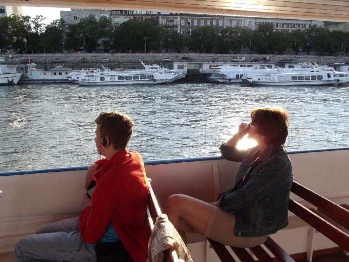 Доехали до центра, немного прогулялись по Vaci и быстрее пошли к набережной Дуная, в планах было успеть прокатиться на теплоходике, пока солнце еще не село. Предложений на речные прогулки очень много, цены разные, по-моему 6 или 8 причалов. Мы взяли часовую прогулку, как мне показалось, по выгодной цене, в специальной будке по продаже билетов, которая работает только на 2 причала. Там можно взять бесплатно и некоторые путеводители для туристов. Там был хоть какой-то порядок с твердыми ценами в отличие от других судов, где предлагалось оплатить прямо на теплоходе и по каким-то непонятным завышенным ценам. Аудиогид на русском есть, шампанское и сок в подарок. Экскурсия познавательная, фон заполняется известными мелодиями венгерского композитора Листа, как в Австрии все заполняется мелодиями Штрауса. Туристов было немного, пароходик был наполовину пустой. Солнце на закате светило ярко-красным и здания на берегу выглядели непривычно контрастно.