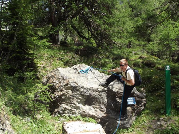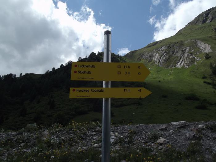 Берем теплую одежду, рюкзаки и вперед. Знак нам обещает час с четвертью пути до ближайшей точки Luсknerhutte, что растягивается в намного большее время. Т.к. встречается много мест, мимо которых пройти просто так нельзя. Это и различные площадки с разной информацией и домики и много-много всяких придумок, в которые обязательно заглянешь или остановишься попробовать.