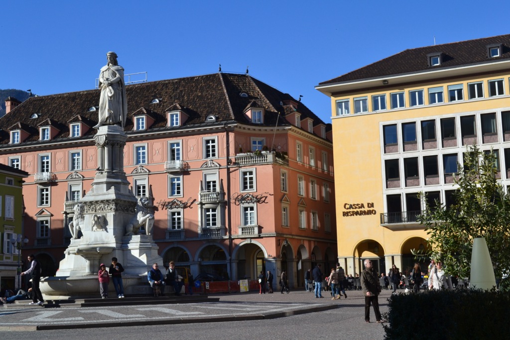 Больцано – город, вошедший в состав Италии в 1919 году после аннексии этой австрийской территории в результате передела Европы в ходе Первой мировой войны. Если учесть, что под Габсбургами этот город был с XIV века, то неудивительно, что Больцано до сих пор более похож на австрийский, чем итальянский. Четверть населения города считает родным языком немецкий и носит тирольские костюмы и шляпу с пером. Немецкая речь на главной площади города действительно звучала: по-моему, в этот воскресный день сюда на экскурсию или на лыжную прогулку приехал класс из Германии или Австрии.