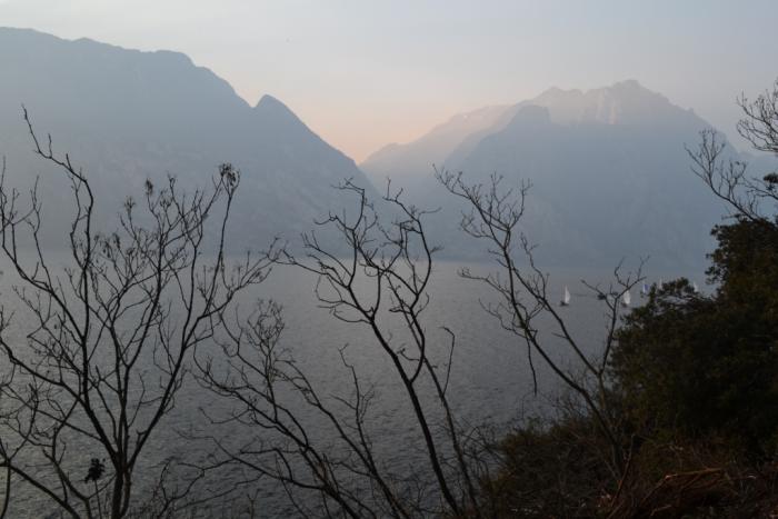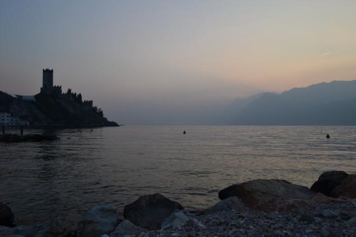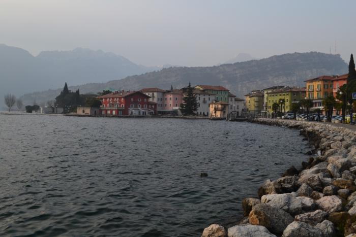 Скоро стало ясно, что в Мальчезине спешить нам незачем: такая легкая дымка постепенно превращалась в уверенный туман. Поэтому мы посвятили остаток светового дня озерным пейзажам, проехав за два с половиной часа чуть больше 60 километров от самой северной оконечности до озера до самой южной, где в Дезенцано-дель-Гарда у нас был забронирован номер в .