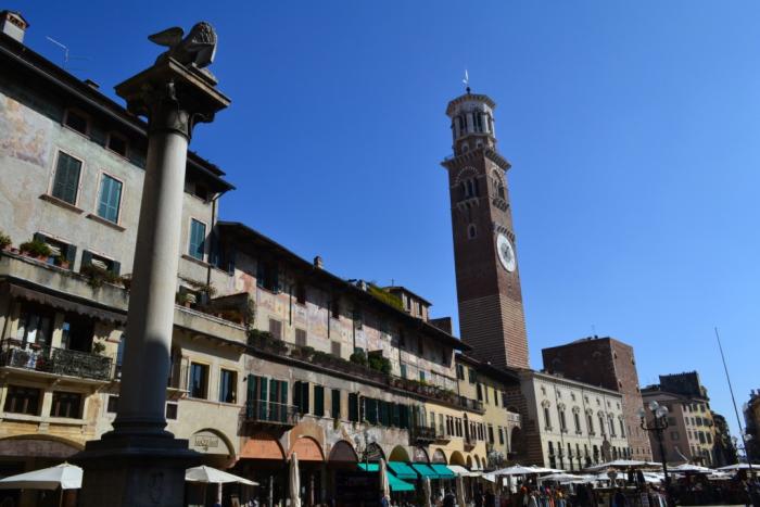 Площадь Синьории (Синьоров) – одна из самых роскошных в Вероне, здесь долгое время были сосредоточены органы государственной власти. В центре площади, по периметру которой расположены благородные палаццо, — памятник Данте: