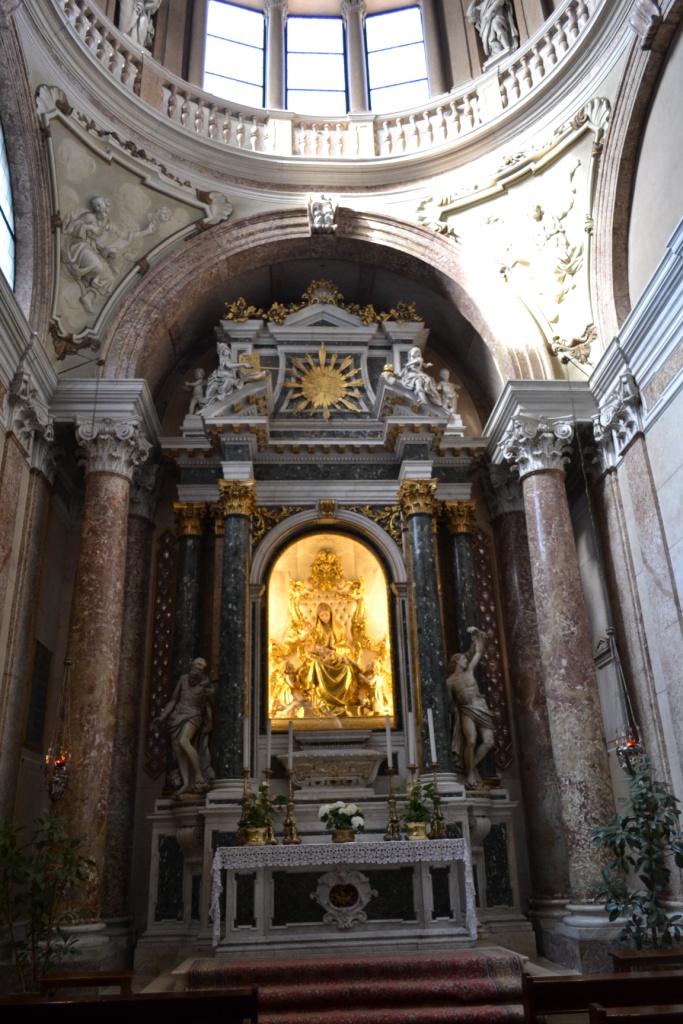 Украшение Вероны — прекрасные церкви. Мы успели посетить всего лишь три. Самой прекрасной по внутреннему убранству была Санта Анастасия. Церковь была основана доминиканцами в 1290, ее строительство продолжалось вплоть до 1481 года. Многоцветный мрамор, стройные колонны, роскошная роспись и уникальные чаши для святой воды обязывают к посещению: