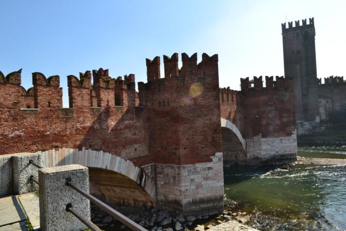Мост Скалигеров: к сожалению, подлинный мост не сохранился. Взорванный во время второй мировой войны подлинник воссоздали заново в 1950-х годах. Чем-то напоминает Царицыно, если учесть историю: