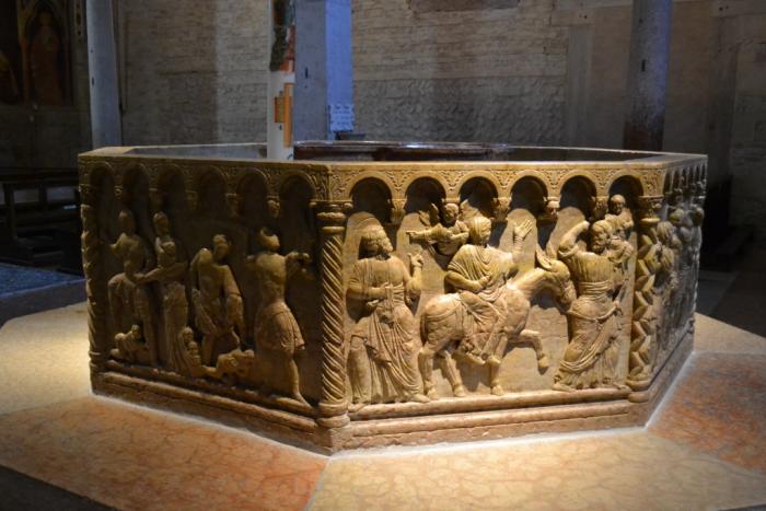 Главное при знакомстве с храмом (на входе можно взять план-схему с описанием на русском языке, что не так часто встречалось в нашей поездке по Италии) – не пройти мимо маленькой двери, ведущей в баптистерий и наиболее архаичную часть комплекса входящих в Дуомо построек: