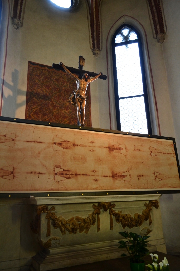Дальнейший диалог показал, что мы «это» не искали. Потому что «этим» была Туринская плащаница, которая на всеобщее обозрение не выставляется уже давно ни за какие коврижки. Наших пытливых туристов такой вариант не устраивал. Он, конечно, и нас тоже не очень-то удовлетворял, но у наших новых знакомцев была ЦЕЛЬ – найти хотя бы копию. Мы пожелали им удачи, а через несколько дней неожиданно таки обнаружили копию плащаницы – но уже в Виченце: