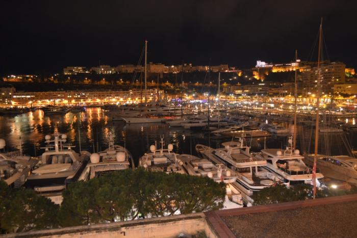 А еще пофотографировали из холла отеля вид на вечерний Монако: