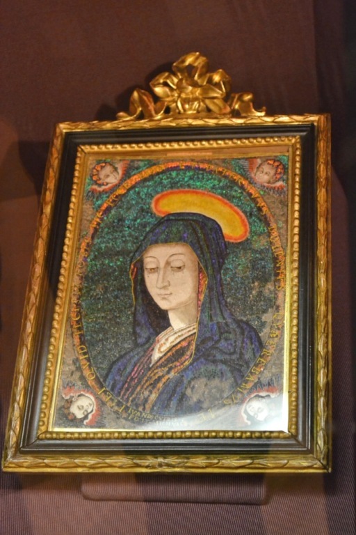 И даже иконы, привезенные из Латинской Америки: их уникальность в том, что материалом для них послужили перья колибри. Сделанные в непревзойденной технике латиноамериканских индейцев, они являются единственными в своем роде и поражают необычайным радужным переливом красок: