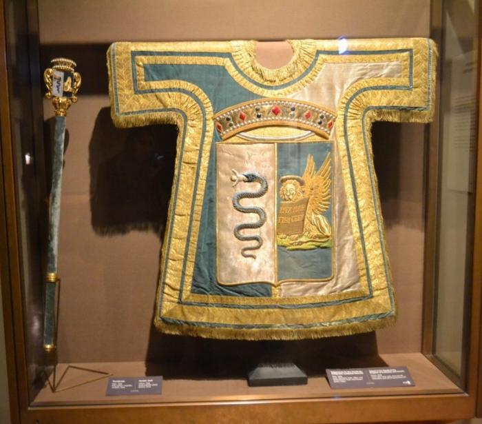 Среди многочисленных императорских одеяний – вот такой вот эскиз парадной мантии. Галочкой отмечен приглянувшийся монарху вариант:
