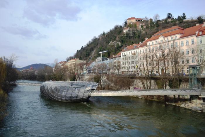 Конечно, не увидеть музей современного искусства в Граце было невозможно. Удивляюсь, как мы, проезжая мимо, умудрились не посмотреть в его сторону! Хотя, может быть, тогда эта весенняя поездка была бы совсем другой! Итак, вот это чудо современной архитектурной мысли: