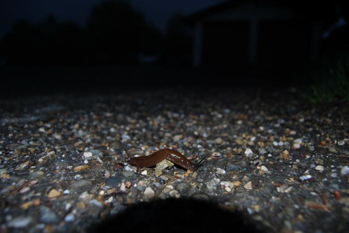 На асфальте ползало множество слизняков и улиток.